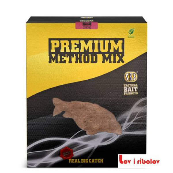 SBS Premium Method Mix 1kg Kao u svakoj kategoriji Premium označava najbolje.Osnovna razlika izmedju Nitro i Premium je u njihovom sastavu.Premium Mthod Mix je složeniji, ima više aditiva i stimulatora od Nitro.Premium se sporije rastvara u vodi i duže će zadržati ribu.Vredi ga mešati sa prepolovljenim i celim boilima kao i sa peletama.U toj kombinaciji i uz korišćenje premium M1 Groundbait mixera postaje nenadmašan za privlačenje ribe i duže zadržavanje na spotu.