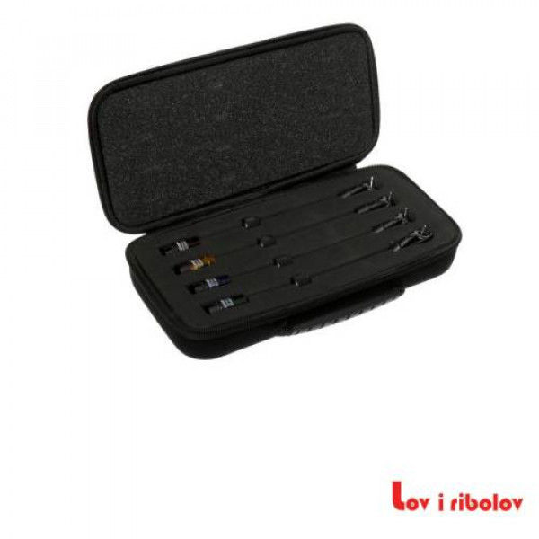 Swinger Smart Bobbin set-4kom Set veoma osetljivih mehaničkih indikatora za ugriz za pecanje šarana, opremljenih konektorima za brzo otpuštanje za pričvršćivanje štapa. Kruti šarnirski dizajn svingera skoro potpuno eliminiše ljuljanje na vetru, dok njegova neobična pokretljivost omogućava da primetite o najpažljivije uzimanje šarana.Podesivi tegovi uz malo napora mogu se pomeriti na prilično dugačkoj šipki: što je bliže glavi svingera, najlon će biti više istegnuta, što je posebno tačno u vetrovitom vremenu.Glava za raspršivanje jakog svetla, uvećana za bolju vidljivost, opremljena je LED diodom. Povezan je sa elektronskim alarmom.U kompletu su četiri svingera - žuta, crvena, plava i zelena - upakovana u transportni kofer.