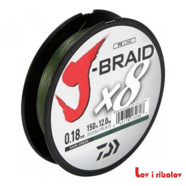 Upredena struna Daiwa J-braid X8E 150m Dark Green